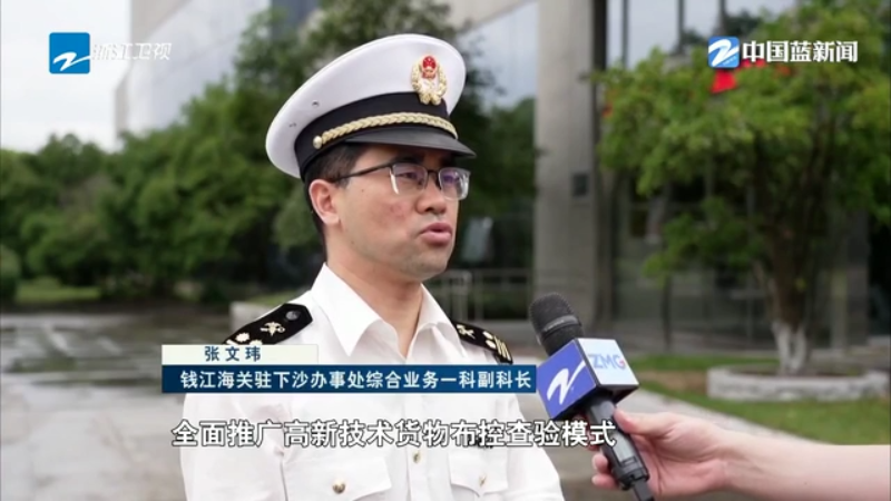 钱江海关驻下沙办事处综合业务一科副科长 张文玮:全面推广高新技术货物布控查验模式,提供“7×24小时”不间断通关服务,保障高新技术产品原料进口和产品出口的高效通关。